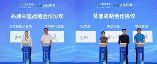 在大会的签约环节,多个涉农国企达成了战略合作协议。怀化农林集团与三亚现代农投就海鲜集采分销中心达成战略合作;江西省粮油集团与三亚现代农投签署战略协议;恒优选、天坛文化与农品联盟携手,共拓产销一体化新模式。